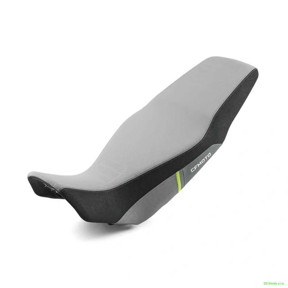 O 50 mm zvýšené sedlo pro motocykl CFMOTO 450MT z řady originálního příslušenství. Celková výška posezu jezdce dosahuje 870 mm. Verze se žlutým proužkem perfektně ladí s šedým provedením 450MT.