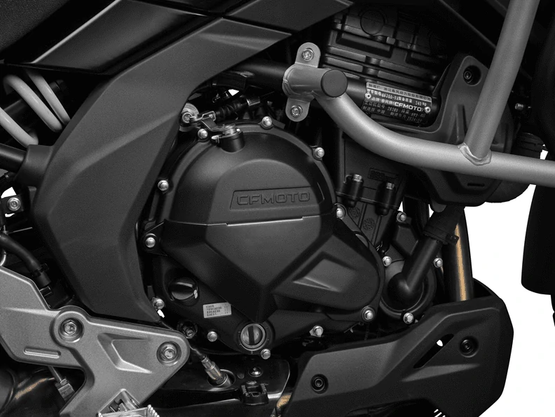 Sada dvou bočních nylonových krytů motoru motocyklu 700MT Adventure z nabídky originálního příslušenství CFMOTO.