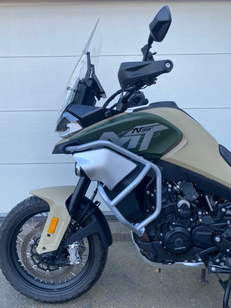 Robustní ochranný rám pro CFMOTO 800MT instalovaný místo originálních padáků dodávaných na stroji z výroby. Vyvinutý a vyrobený v České republice, důkladně testovaný, perfektně ochrání motocykl při pádu.