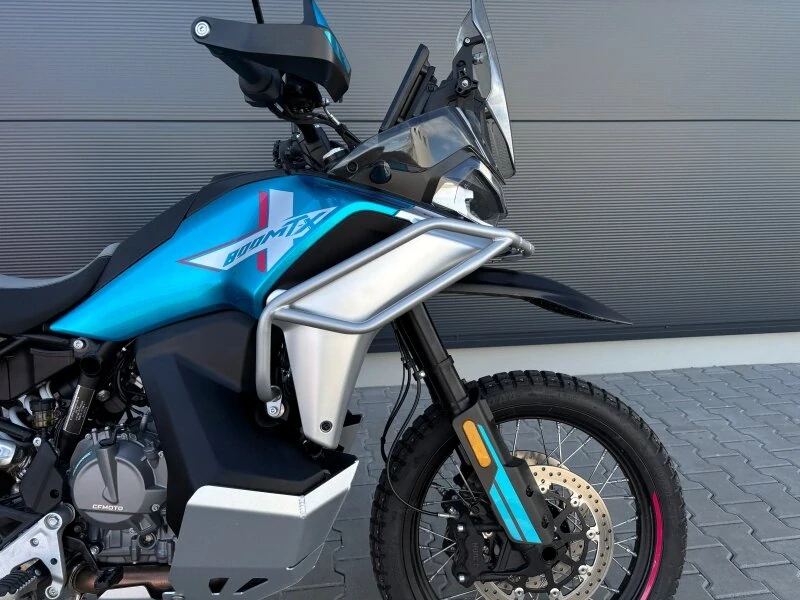 Sada horních padacích rámů chránících kapotáž motocyklu 800MT‑X z nabídky originálního příslušenství CFMOTO. Pro maximální ochranu stroje doporučujeme dokoupit spodní padací rámy nebo kryt motoru (nelze obojí).