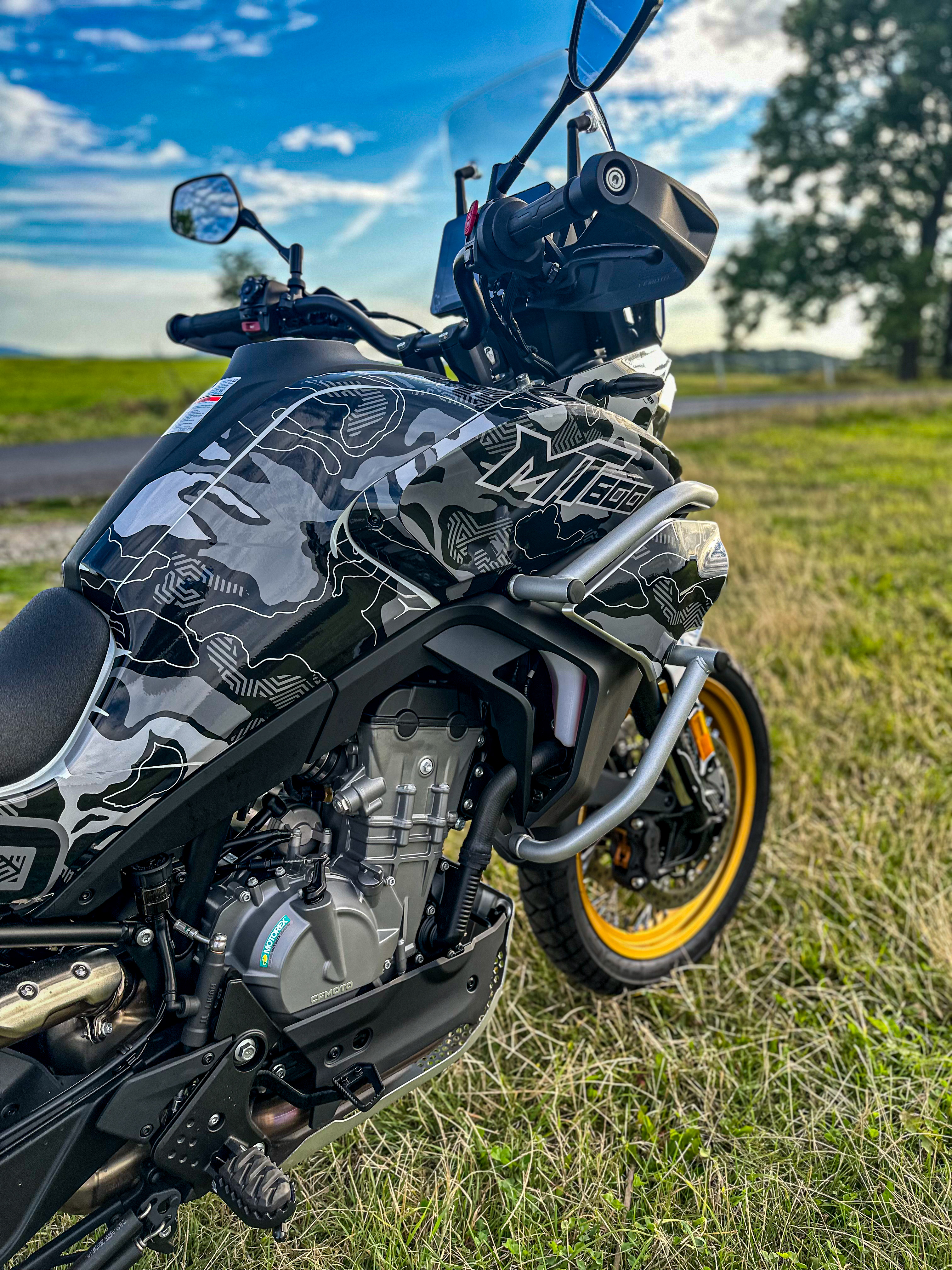 Takto vypadá naše testovací motorka s polepem camo-black - VERZE LIGHT