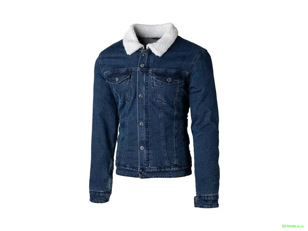 Džínová bunda klasického střihu s ochranou Kevlar®, vnitřní podšívkou Sherpa fleece (dlouhý chlup z beránka) a s chrániči na ramenou a loktech.