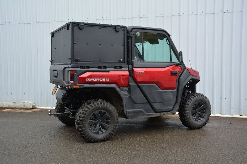 Praktická uzamykatelná nástavba korby pro CFMOTO Gladiator U10 PRO/XL od renomovaného českého výrobce DFK. Robustní kovový rám s povrchovými panely z vysokopevnostního termoplastu ABS. Tři výklopné stěny pro pohodlný přístup na korbu ze všech stran.