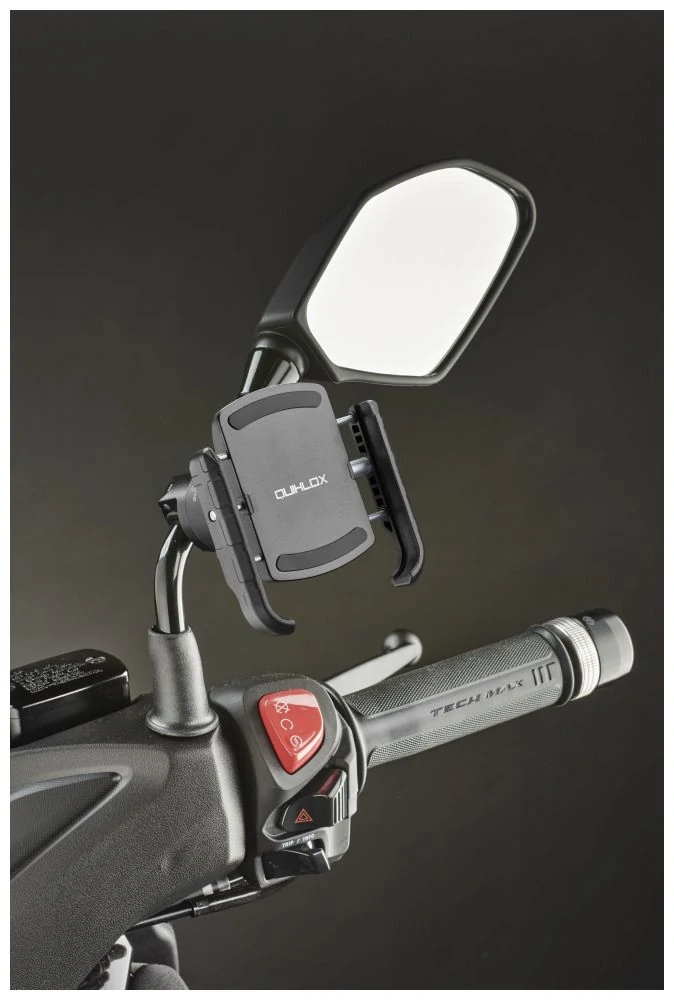 Popis produktu: Univerzální držák Interphone Crab QUIKLOX určený k uchycení na zrcátko motocyklu vám umožní mít váš mobilní telefon pohodlně a bezpečně po ruce během jízdy. Spojuje v sobě výhody tvrzené hliníkové konstrukce, stylového designu a praktického provedení. Kleště držáku jsou kryté silikonovým polstrováním a bezpečně zafixují jakýkoliv mobilní telefon s šířkou 6 - 9 cm, který se nepohne ani při sebevětších otřesech způsobených jízdou. Držák je vybaven rychloupínacím systémem QUIKLOX, pro jeho pevné zajištění stačí pouhé pootočení. Stejně rychle pak telefon po skončení jízdy odepnete. Instalace je jednoduchá, pomocí volitelných výplní se průměr držáku přizpůsobí danému průměru zrcátka. |